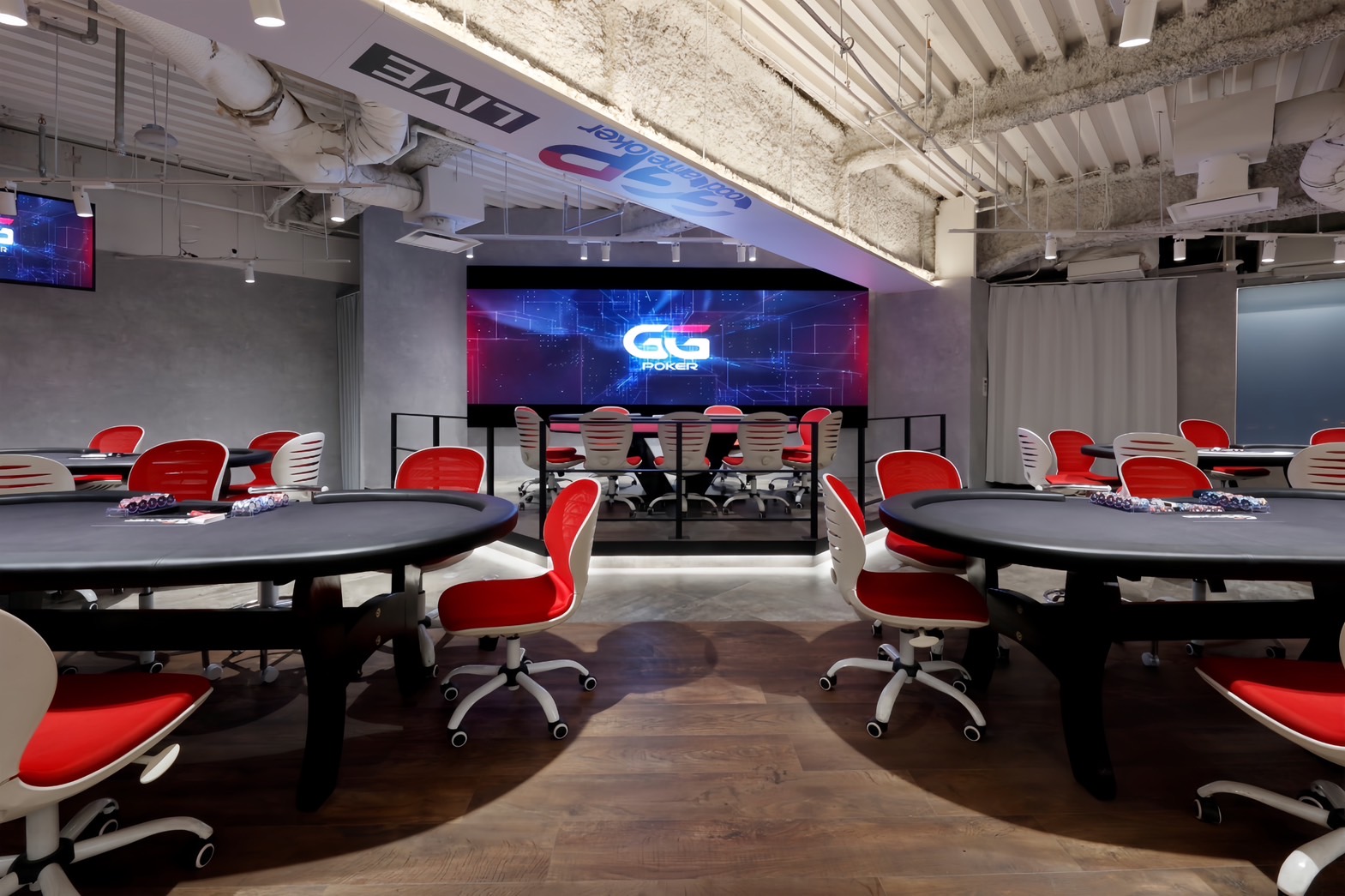 天井がとても高くて他のポーカールームと比べてリラックスした空間でポーカーができます。