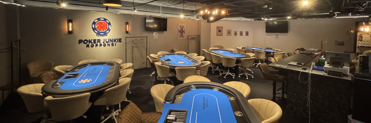 POKER JUNKIE ROPPONGIは広々した空間にエリア最大級の7卓完備のポーカールームです!